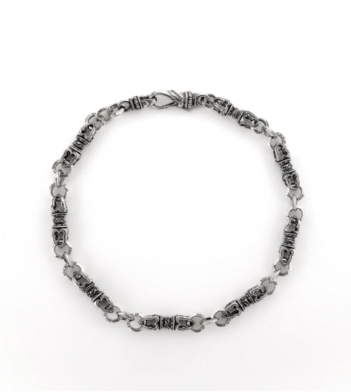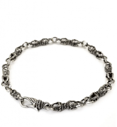 天空の良い力を集め、煩悩を打ち砕き、持つ人を護る法具ドージェ。 流麗な曲先で構成される王冠(Crown)の様な鈷杵部は流麗な鏡面に仕上げ シルバージュエリーの魅力である輝きを堪能できる仕様に。 ZOCALOならではの緻密なカービングとのマッチングも言うことなしの大人のシルバージュエリーです。 様々なメンズファッションに合わせやすく、バングルブレスレットなどと重ねても着けてもカッコいいシルバーアクセサリー。 ギフトやペアにもオススメ! シルバー 20cm 18cm